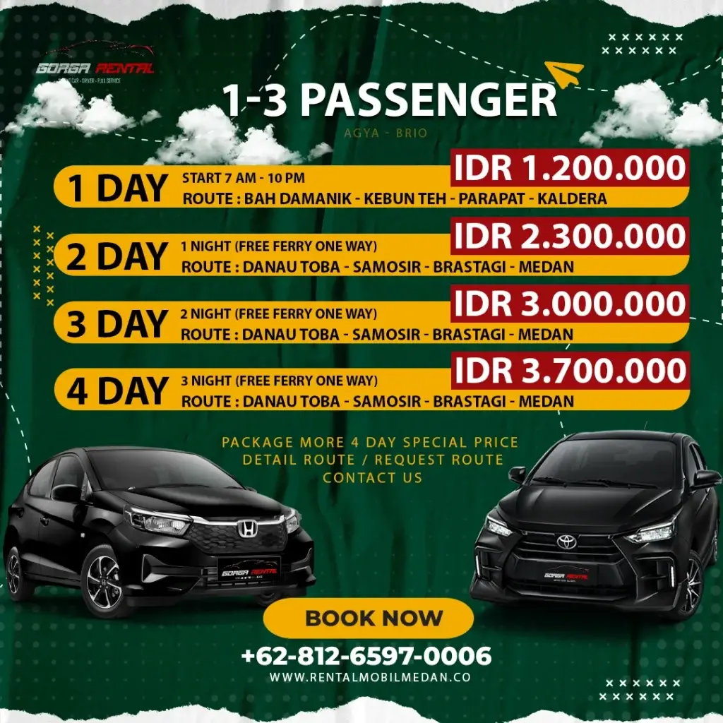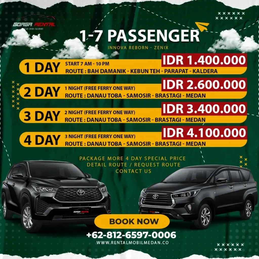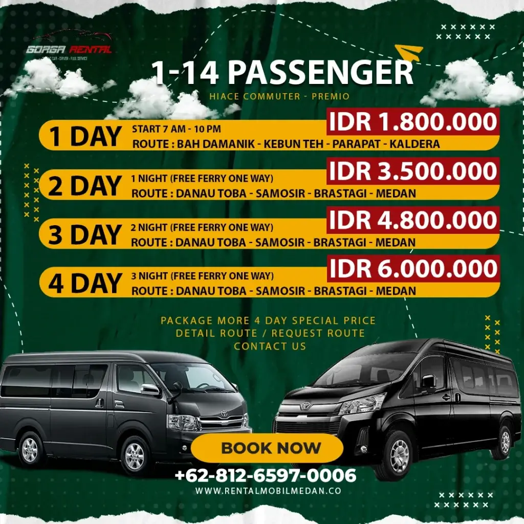 Layanan ini sangat populer di kota medan di gorga rental kami menyediakan layanan ini dengan syarat dan ketentuan yang berlaku. Untuk pemesanan minimal H-1.